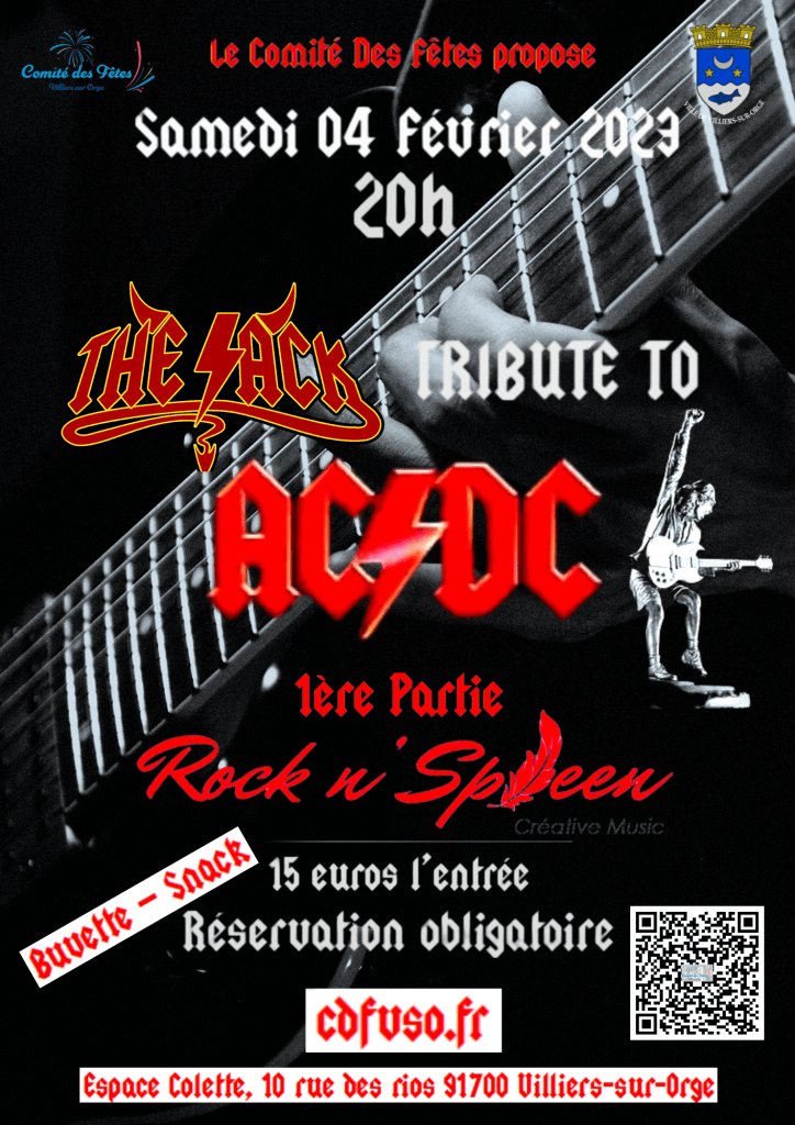 Le 04/02/2023 à 20h00, le Comité des Fête propose The Jack tribute To AC/DC avec en 1ère partie Rock’n’Spleen.